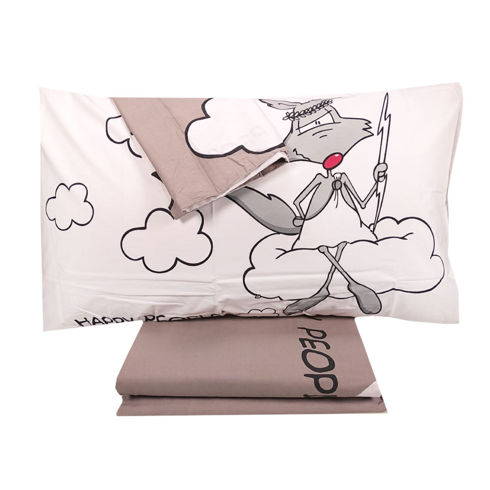 EIC-PI HAPPY PEOPLE kompletter Bettbezug bestehend aus Bettbezugsbeutel, Bodenlaken mit Gummiecken und 2 Kissenbezügen 50x80 cm, aus 100% Baumwollperkal. Ausgezeichnet als originelle und schöne Geschenkidee. Hergestellt in Italien