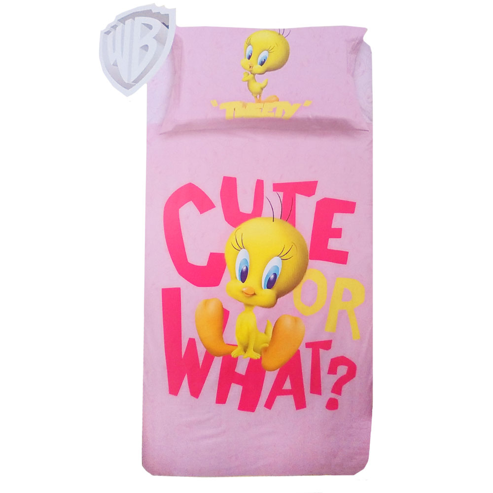 Wählen Sie dieses zarte Einzelbettbezug-Set mit hochauflösendem Druck des Kanarienvogels Tweety. Komplett aus 100% reiner Baumwolle. Die für dieses Produkt verwendeten Stoffe und Farben sind frei von gesundheits- und umweltschädlichen Stoffen und entsprechen den geltenden internationalen Standards. Maschinenwaschbar bei 40°C