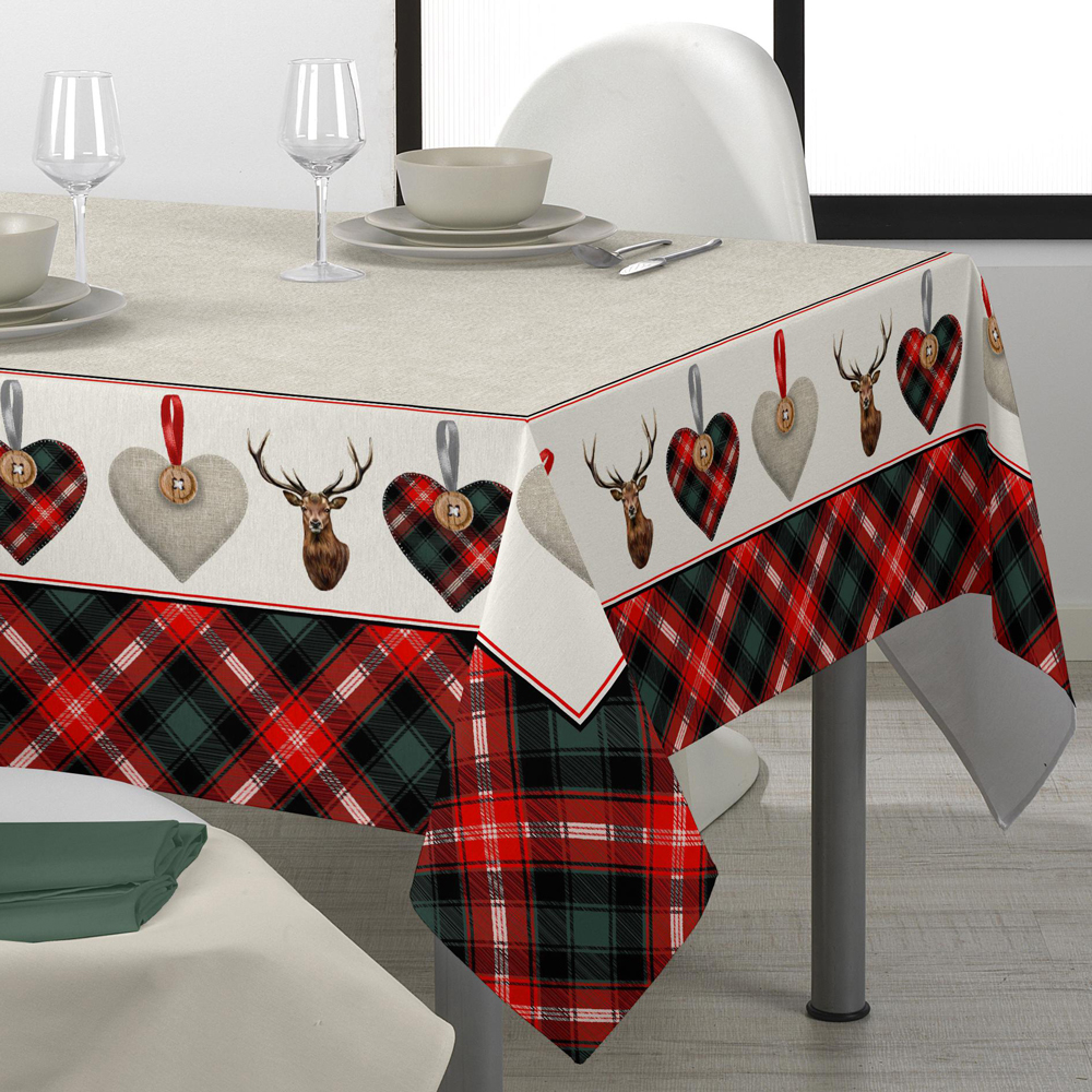 Weihnachten steht vor der Tür! Eine noch nie dagewesene Schneelandschaft mit Woodland, der neuen Tischdecke aus der Merry Christmas Collection von Gabel 1957. Gedruckt mit Digitaltechnik auf Panama aus reiner Baumwolle, platziertes Motiv.