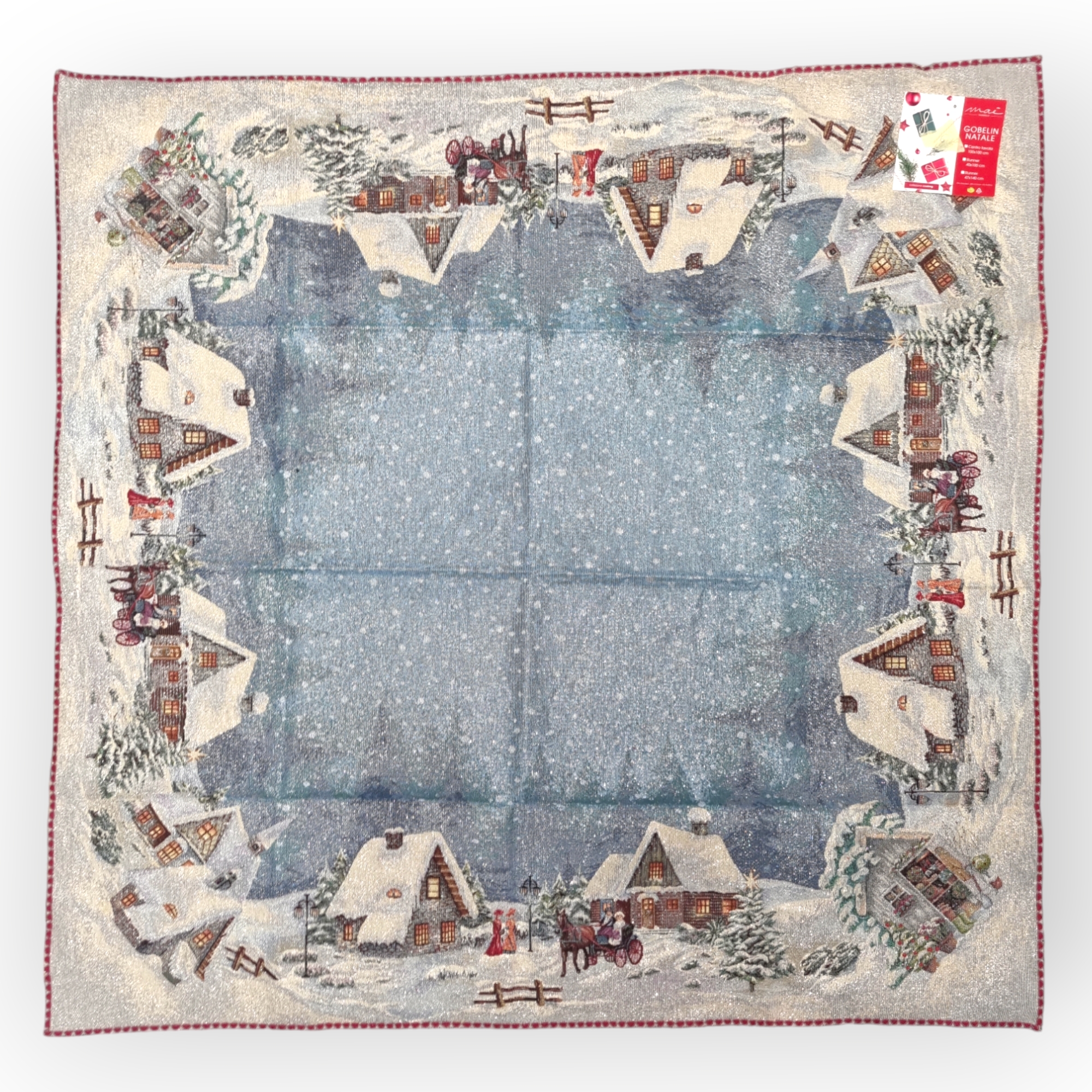 Verschönern Sie Ihr Zuhause mit diesem prächtigen garngefärbten Gobelin-Tafelaufsatz mit weihnachtlichem Design, das einen Hauch von Klasse verleiht.