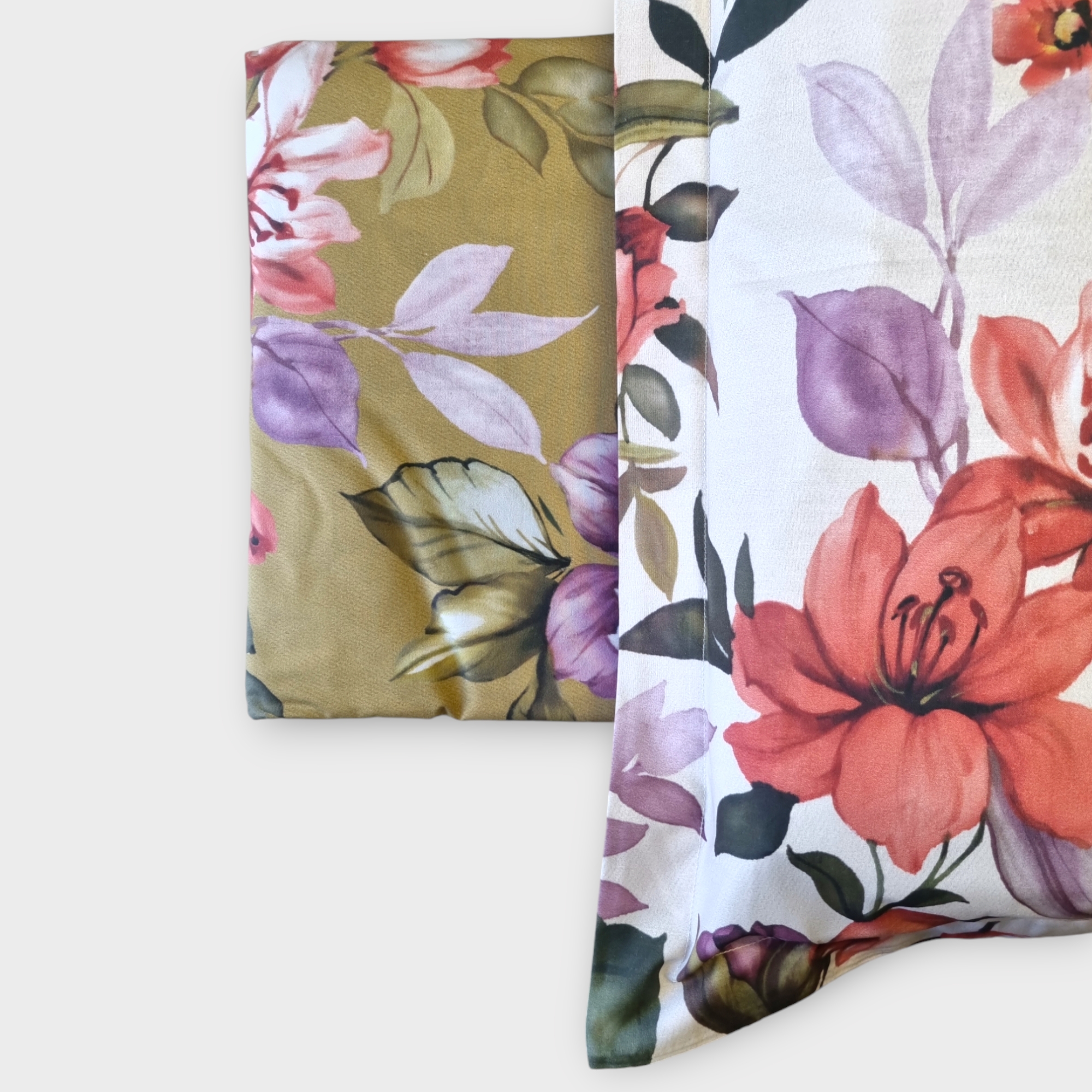 Bettbezug-Tasche mit Blumendruck auf goldenem Hintergrund, 255 x 255 cm.