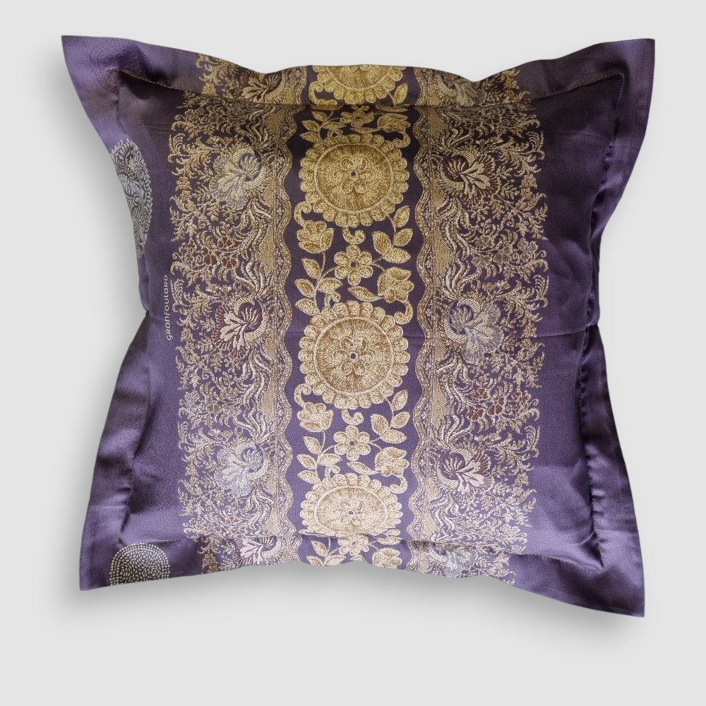 Das Futterdesign weist feine Blumenstickereien und kreisförmige Details auf, die an den griechischen Stil erinnern und ihm einen zeitlosen Reiz verleihen. Die Kombination aus dekorativen Elementen und dem Glanz des Baumwollsatins machen diesen Bezug zu einem vielseitigen Stück, perfekt für den Einsatz auf Sofas, Sesseln oder Betten.