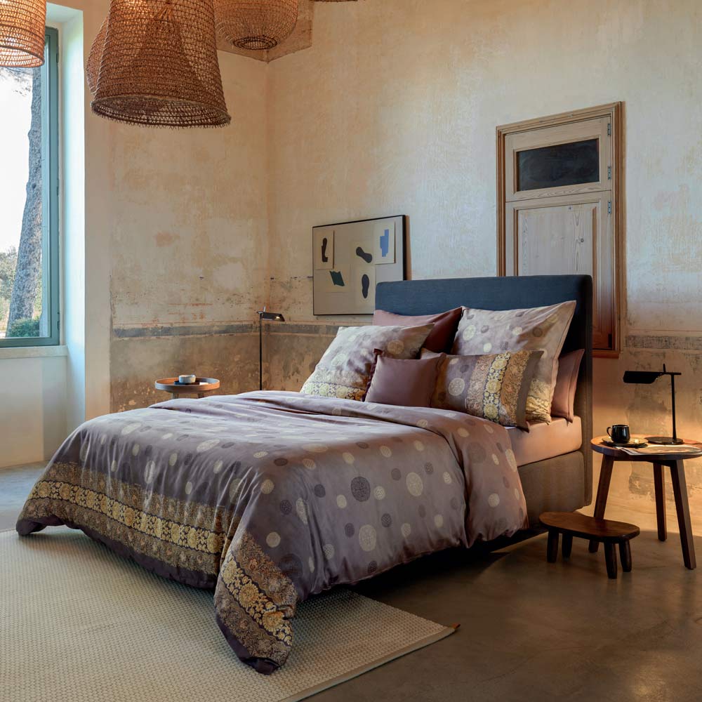 Dank seiner Weichheit und Fähigkeit, Wärme zu speichern, ist der Pallavicino G1-Bettbezug ideal für Herbst und Winter und eine perfekte Ergänzung für jedes Schlafzimmer. Schaffen Sie damit eine einladende und entspannende Umgebung mit einem Design, das an die Schönheit italienischer Gärten erinnert.